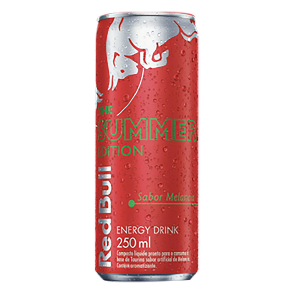 "Energético Red Bull Energy Drink, Summer Edition - Melancia, 250 ml RED BULL TE DÁ ASAS Inspirado por bebidas funcionais do Extremo Oriente, Dietrich Mateschitz fundou a Red Bull em meados dos anos 80. Ele criou a fórmula e desenvolveu o conceito de marketing exclusivo ao lançar o primeiro Red Bull Energy Drink em 1º de abril de 1987 na Áustria. Uma nova categoria de produtos ¿ Energéticos - nascia. QUANDO BEBER O Red Bull Energy Drink é apreciado em todo o mundo por atletas de elite, profissionais dinâmicos, estudantes ativos e motoristas em viagens longas. O QUE EXISTE DENTRO DA LATA Cafeína: A cafeína já era conhecida por seus efeitos estimulantes pelas civilizações antigas, que a consumiam a partir de fontes naturais como o chá, café grãos de cacau e noz de cola. Taurina: Taurina é um aminoácido natural do corpo humano, que está presente na dieta diária das pessoas e está envolvida numa vasta gama de processos biológicos. Vitaminas do grupo B: As vitaminas são micronutrientes essenciais necessários para manter as funções normais do organismo. Açúcares: Red Bull Energy Drink é feito com açúcar proveniente da beterraba. Água das fontes Alpinas: Naturalmente, a água é um ingrediente crucial da Red Bull."