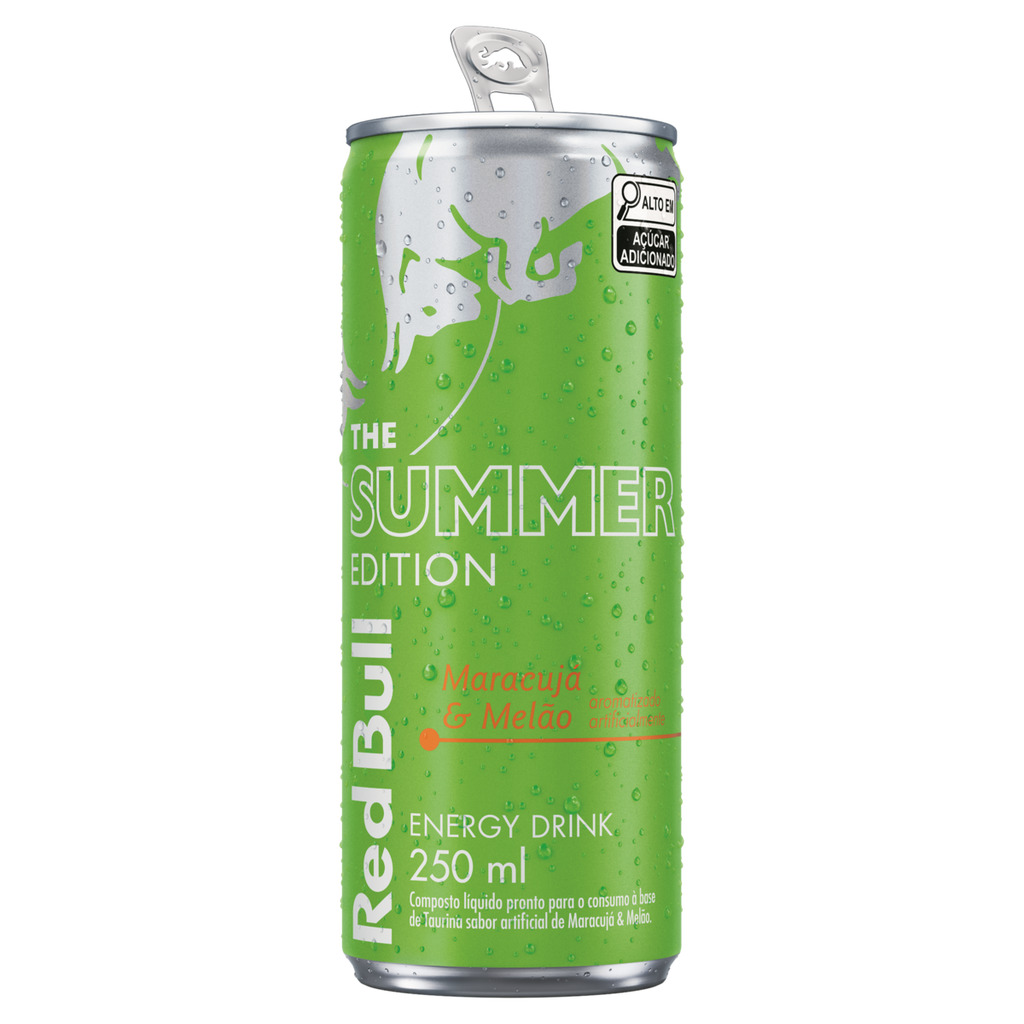 Bebida energética Red Bull Summer Edition Maracujá & Melão com sabor frutado que combina notas de maracujá e melão, oferecendo uma experiência refrescante e leve. Contém cafeína e outros ingredientes energéticos típicos da marca para proporcionar estímulo extra de energia e foco. Lata de 250 ml, indicada para consumo gelada ou quando for necessário um impulso de disposição.