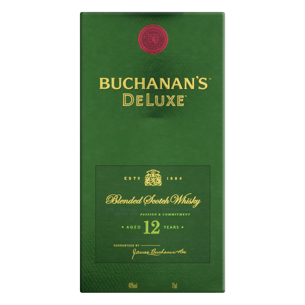 Whisky escocês blended envelhecido por 12 anos, com aroma aromático e encorpado, combinando notas cítricas, caramelo e baunilha com um leve toque defumado. No paladar apresenta sabor suave, levemente adocicado com nuances de frutas e carvalho, evoluindo para um final equilibrado e aromático. Pode ser degustado puro, com gelo ou misturado em drinks. Garrafa com 750 ml, teor alcoólico de cerca de 40% e coloração dourada.